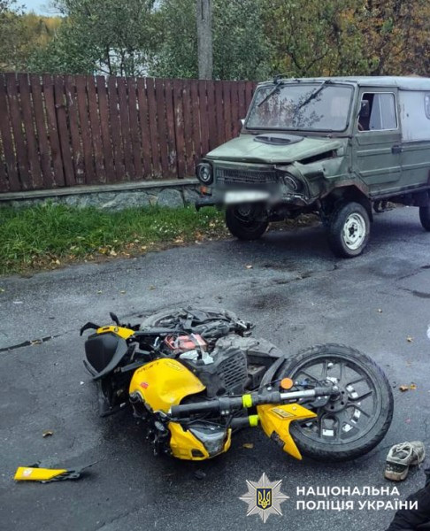 Унаслідок ДТП мотоцикліст отримав перелом ноги. Поліцейські встановили, що він перебував у стані сп’яніння та не мав водійського посвідчення.